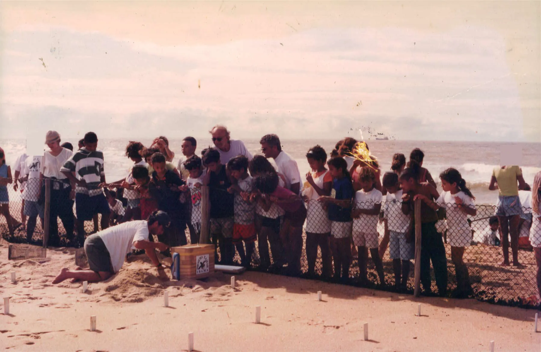 Moradores e turistas, se reúnem para acompanhar a abertura de ninhos de tartarugas na Reserva Biológica de Comboios, em Regência.