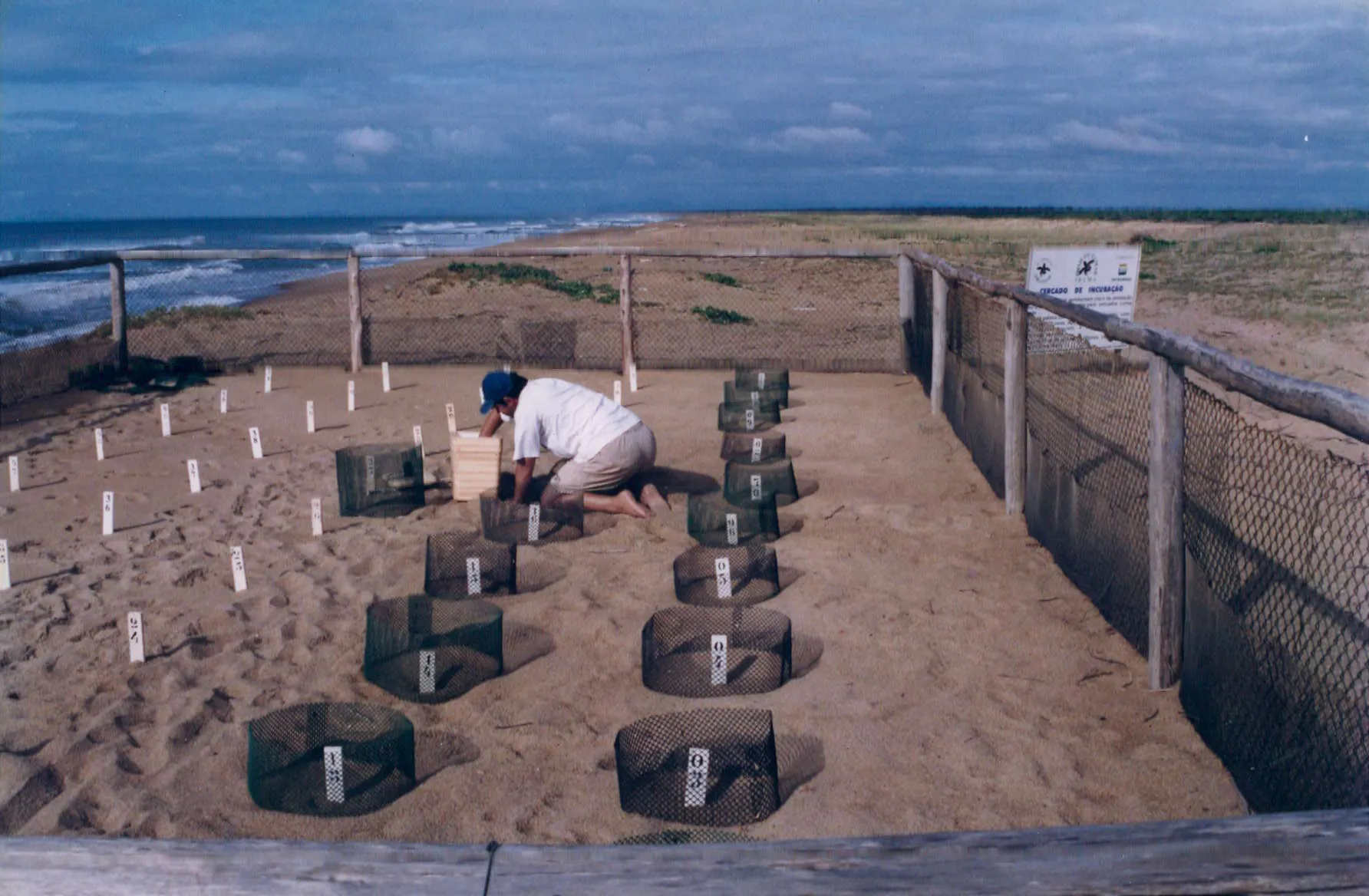Abertura do ninho para retirada dos filhotes de tartarugas após o período de incubação.
