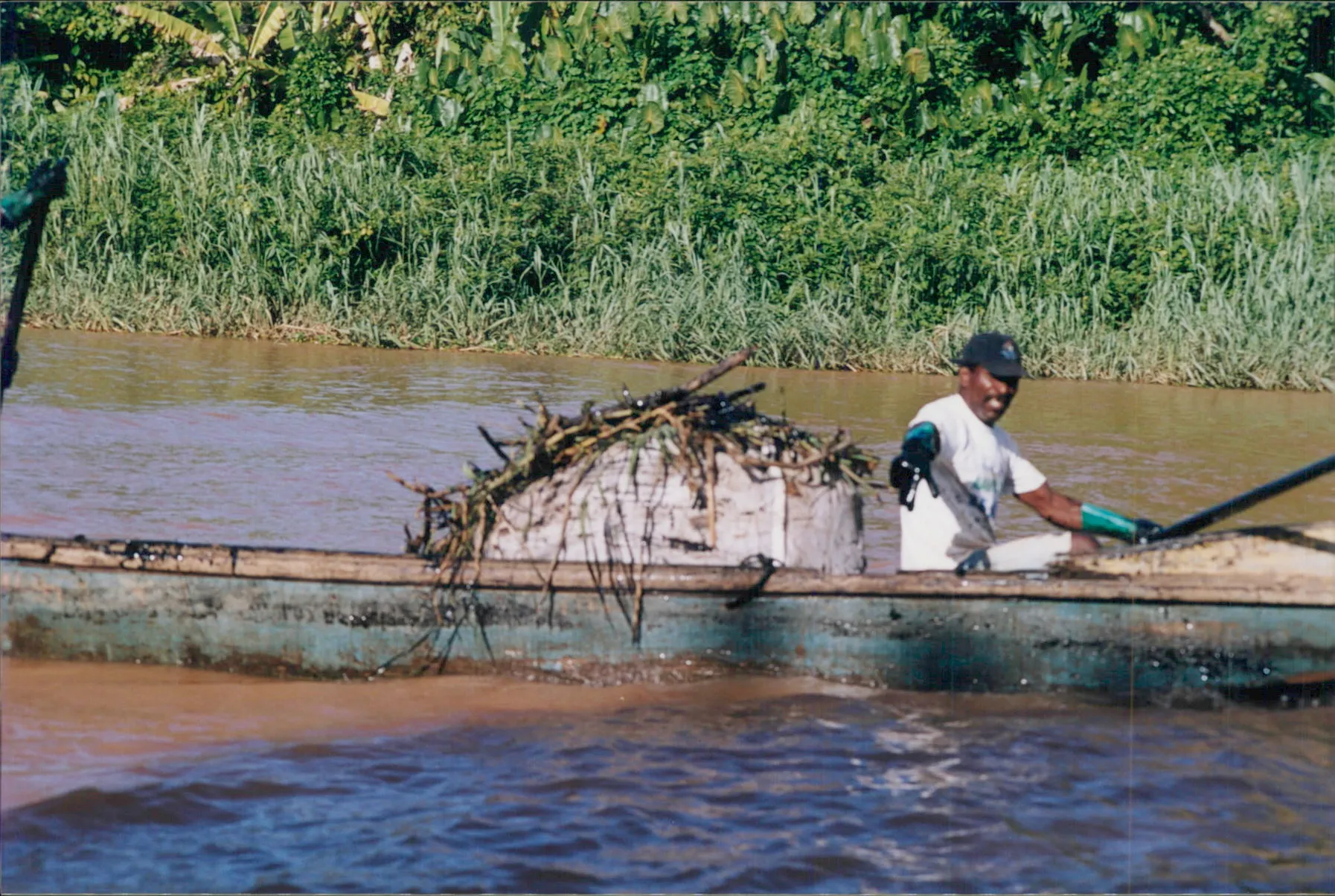 Pescador em atuação na limpeza do rio Doce, após o derrame do petróleo.