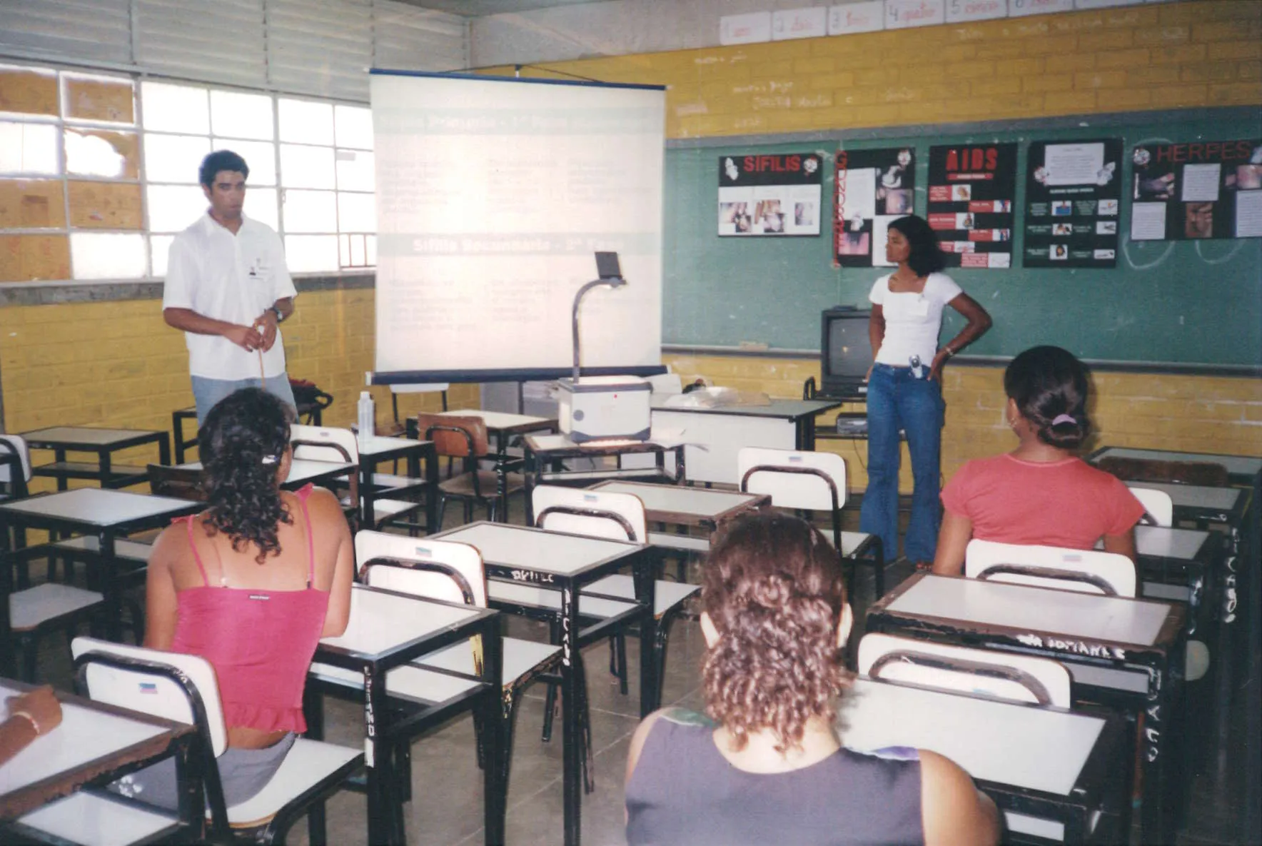 Palestra sobre Doenças Sexualmente Transmissíveis (DST) com alunos da Escola Vila Regência. Ação realizada pelo Secretaria de Saúde Municipal de Linhares.