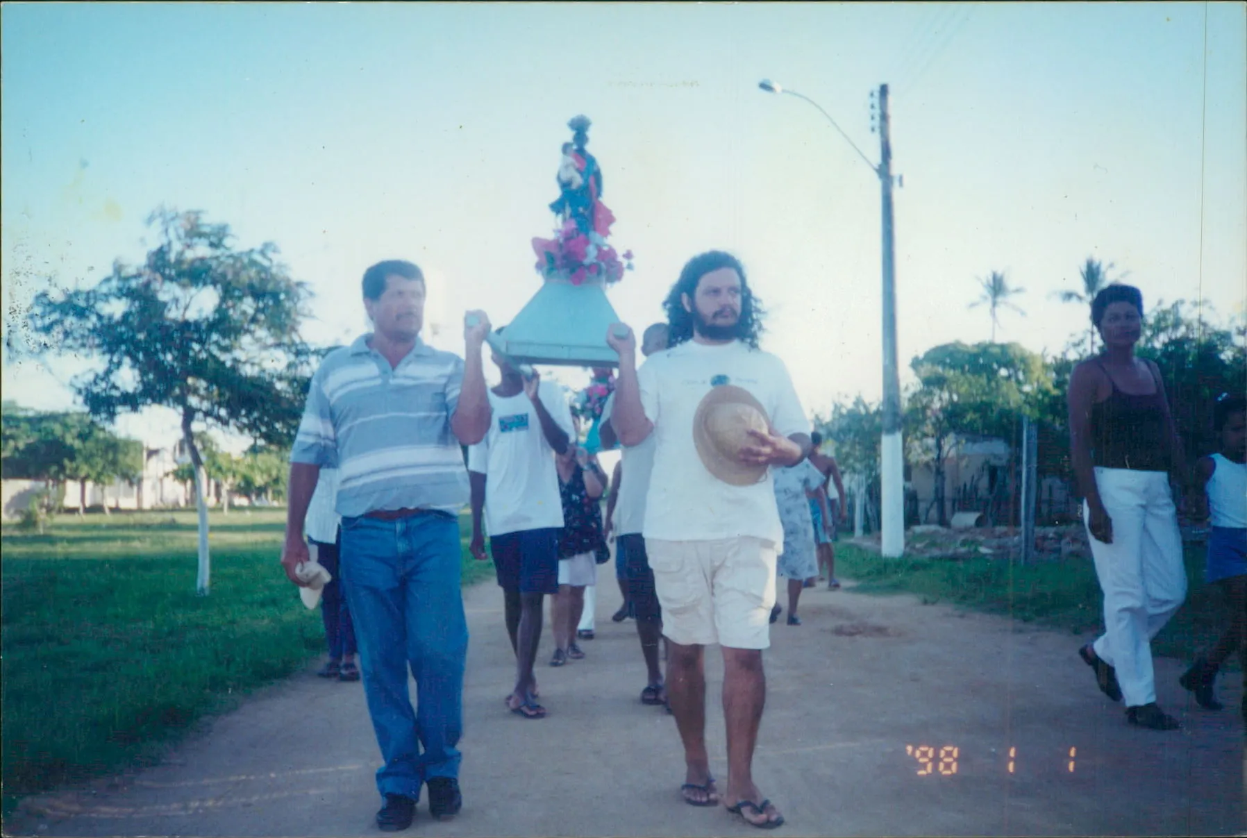 Procissão pelas ruas de Regência com imagem de São Benedito.