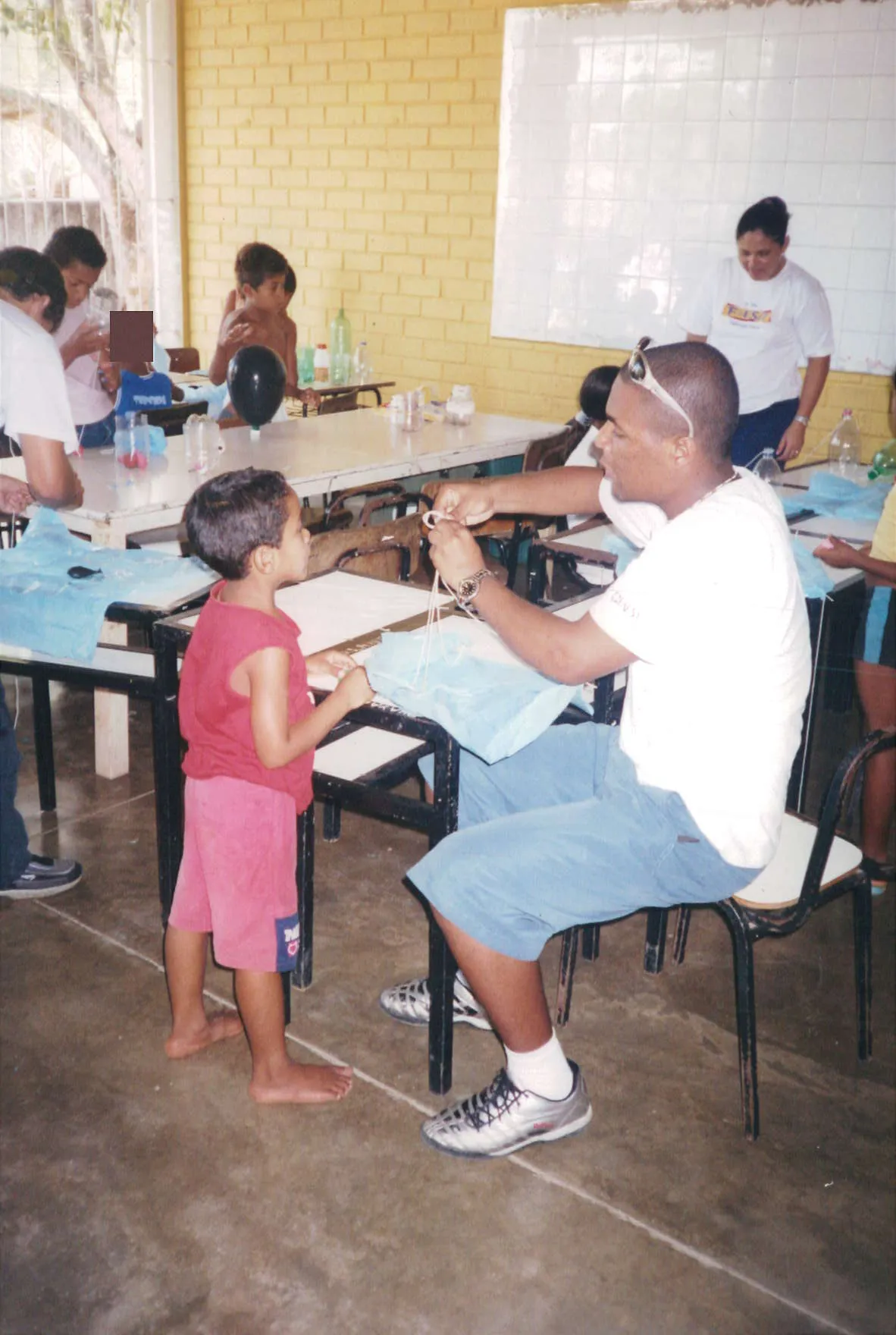 Alunos da Escola de Vila Regência participam da oficina de materiais recicláveis e aprendem a confeccionar brinquedos.