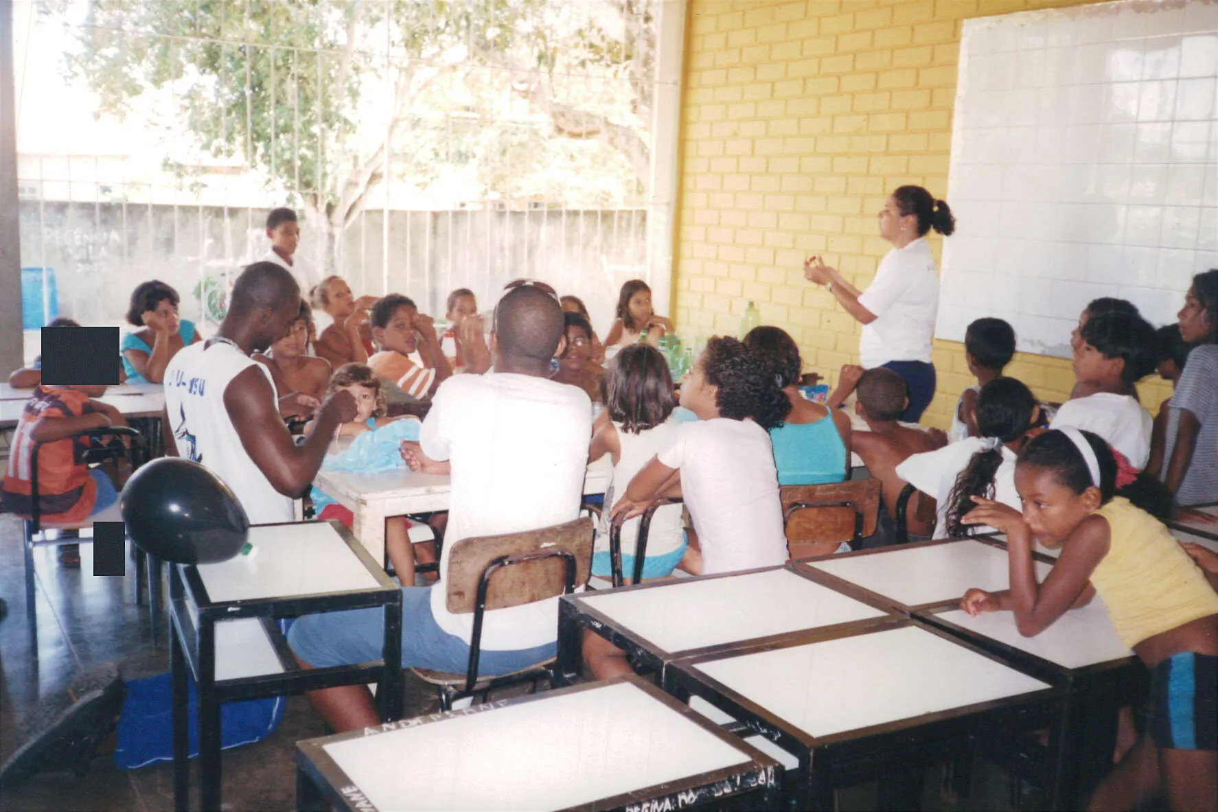 Alunos da escola de Vila Regência participam da oficina de materiais recicláveis.