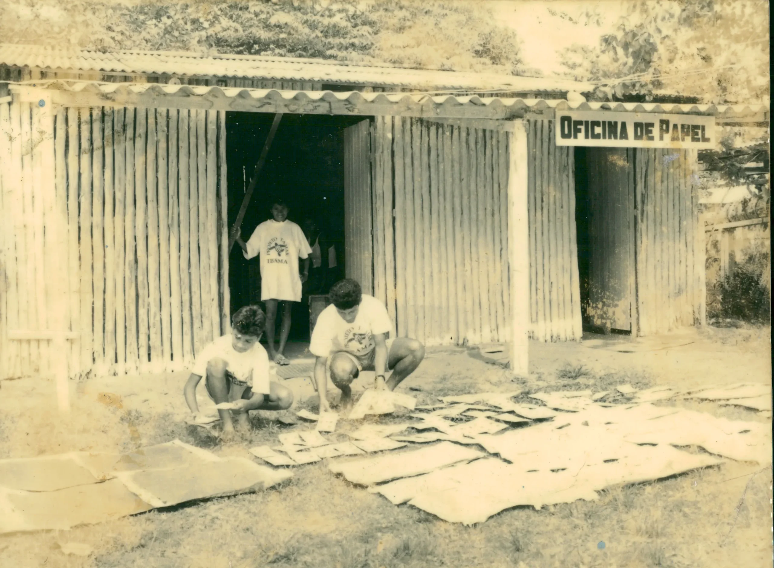 Bolsas confeccionadas na oficina de papal em processo secagem.
