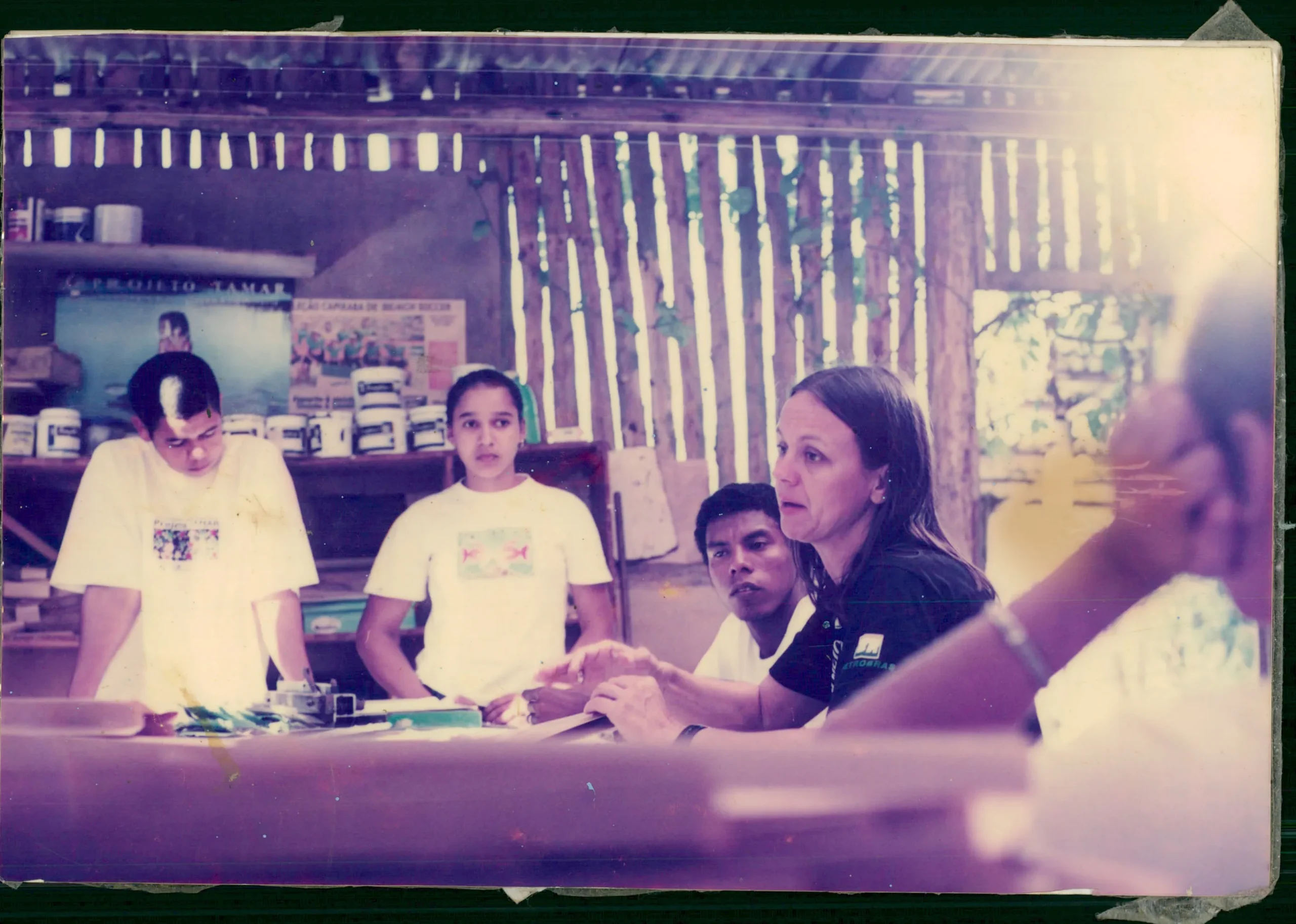 Equipe da oficina de papel em localizada no centro ecologico em Regência.