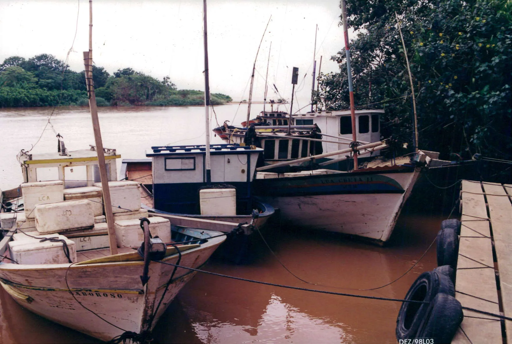 Barcos pesqueiros atracados no cais do porto de Regência.