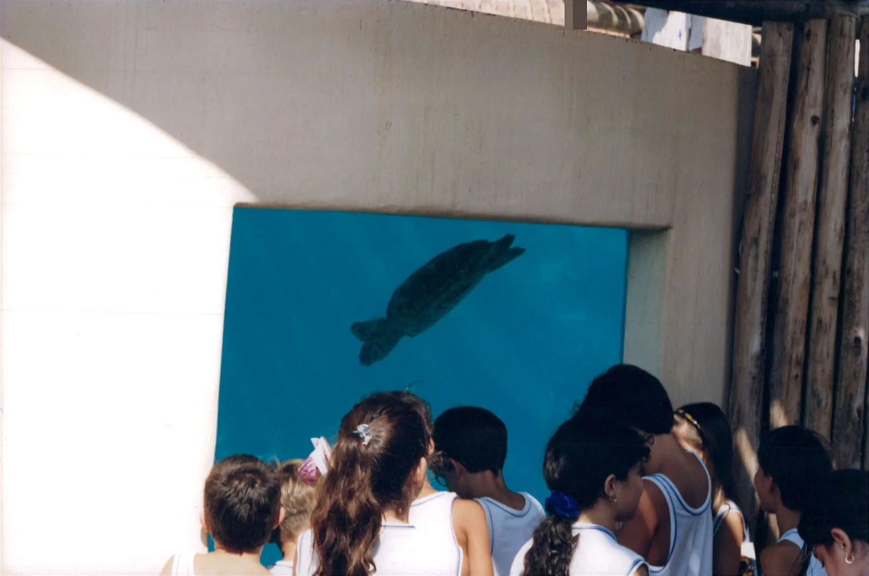 Tanque subterrâneo com um visor de vidro para observação de tartarugas marinhas.