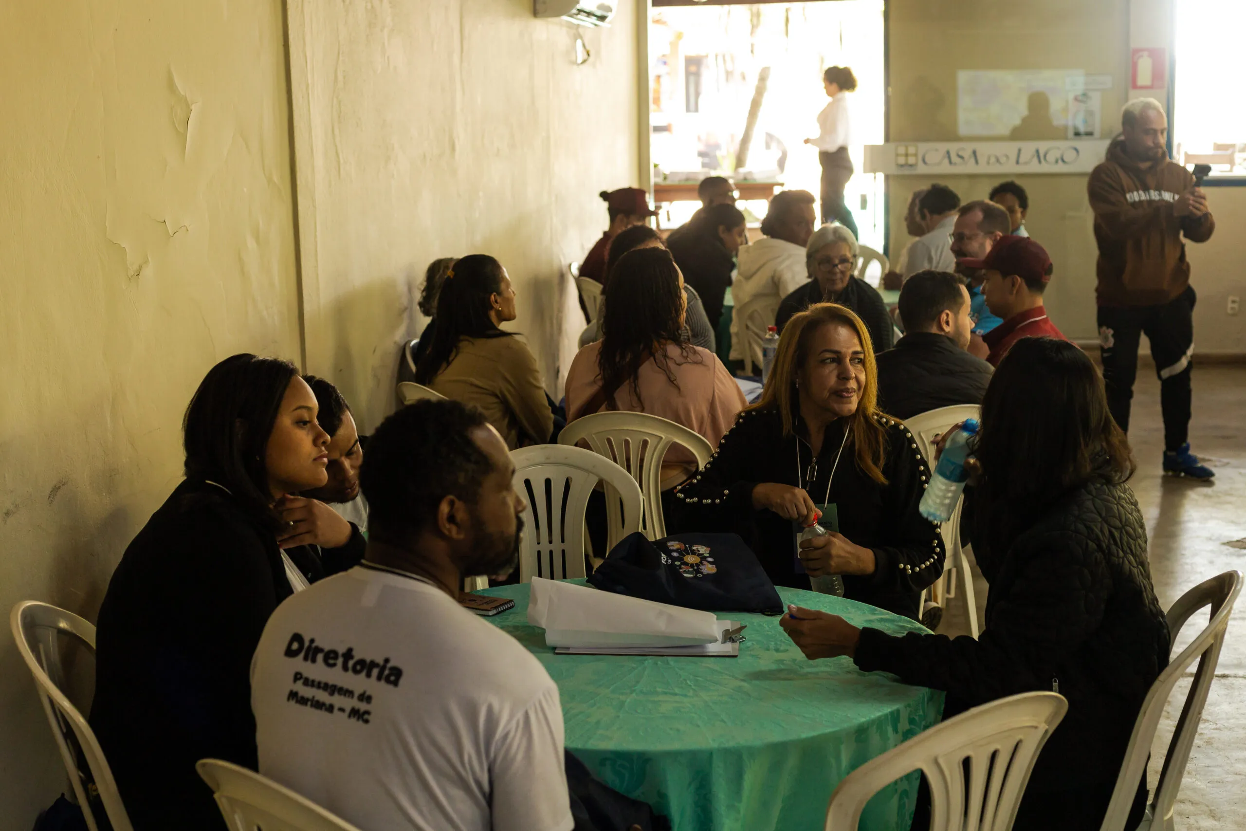 Participante organizando as imagens da dinâmica. Organização visível: Associação Barralonguense das Bordadeiras e Artesãos.
