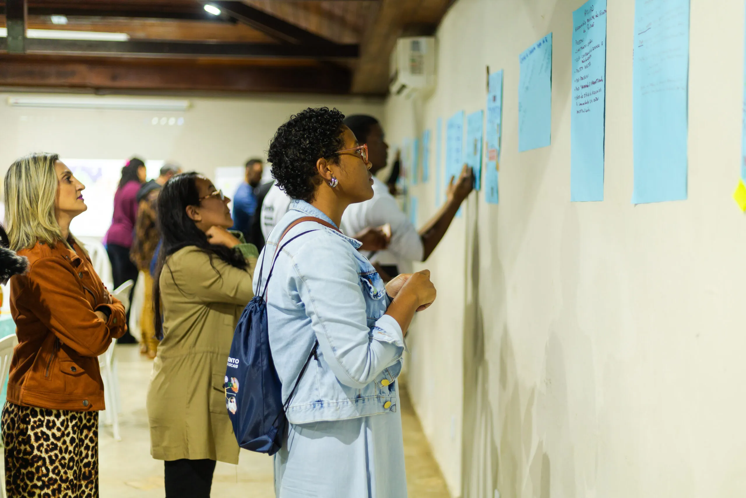 Representantes: AMBACLA; Bloco do Boqueirão e representante da extinta Fundação Renova observando cartazes da Terceira Dinâmica.