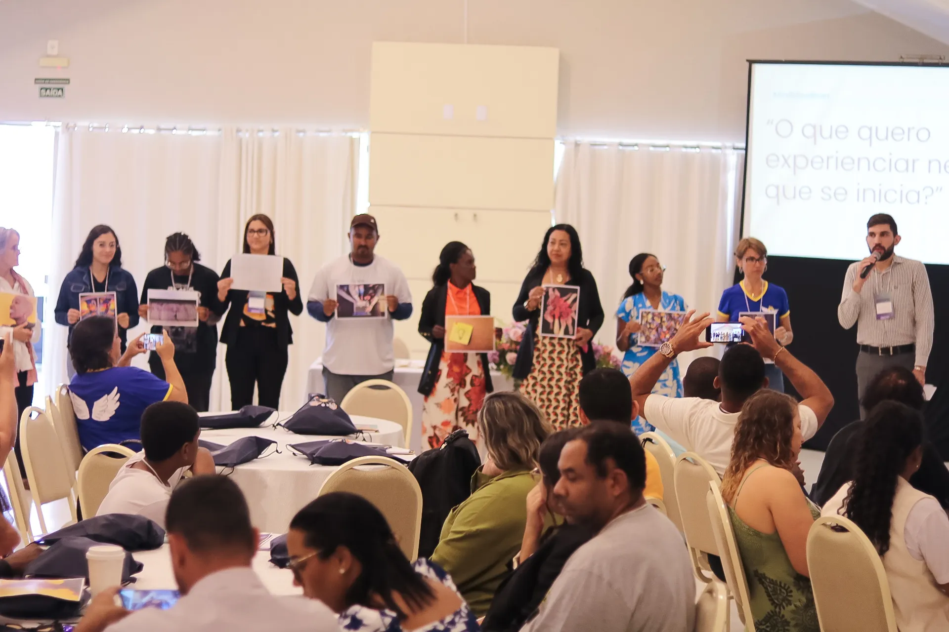 Apresentação do primeiro grupo da primeira dinâmica em grupo. Organizações visíveis: Anjos de que montam.