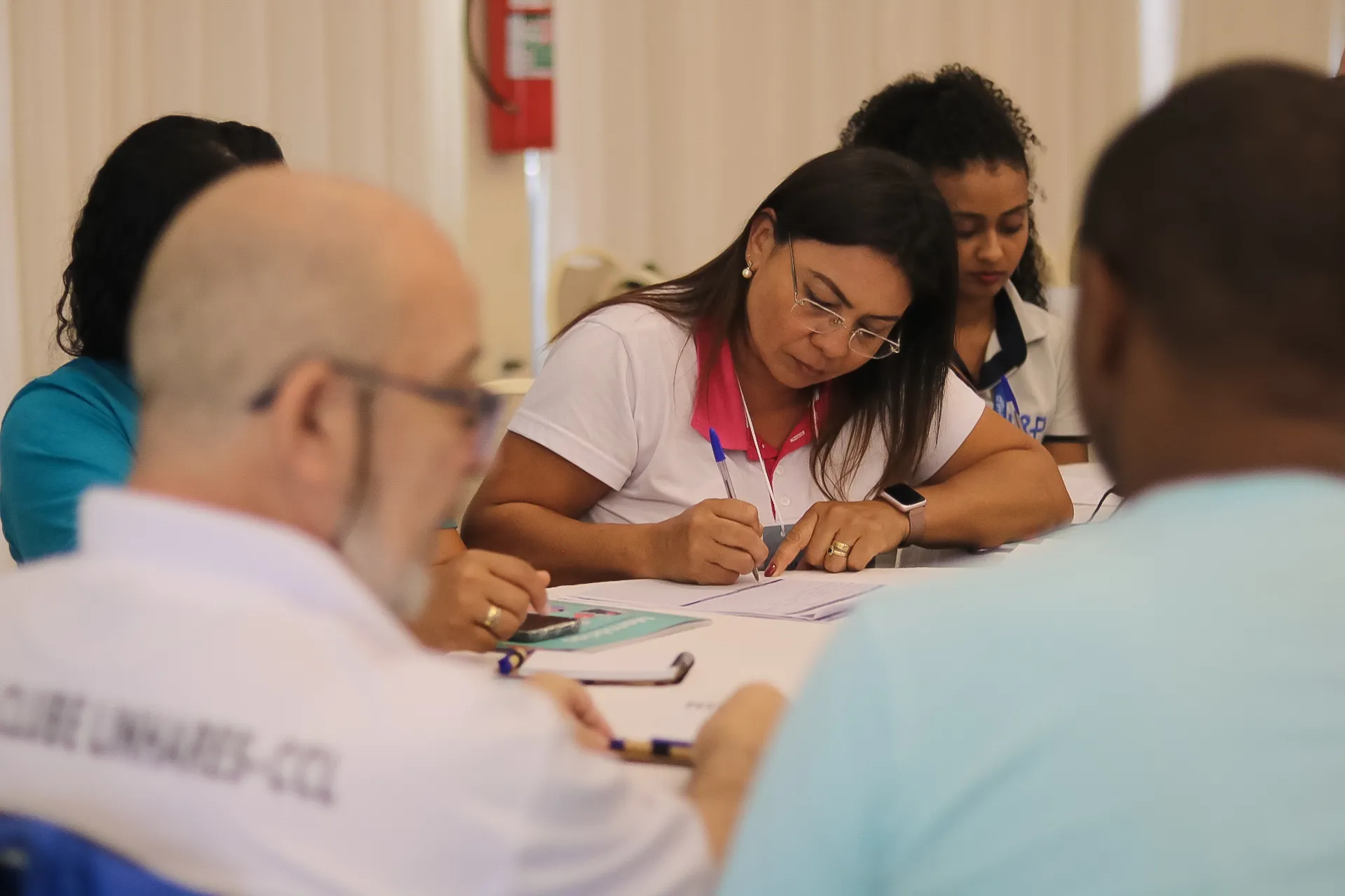Representantes realizando a segunda dinâmica em grupo. Organização visível: AFEMOL.